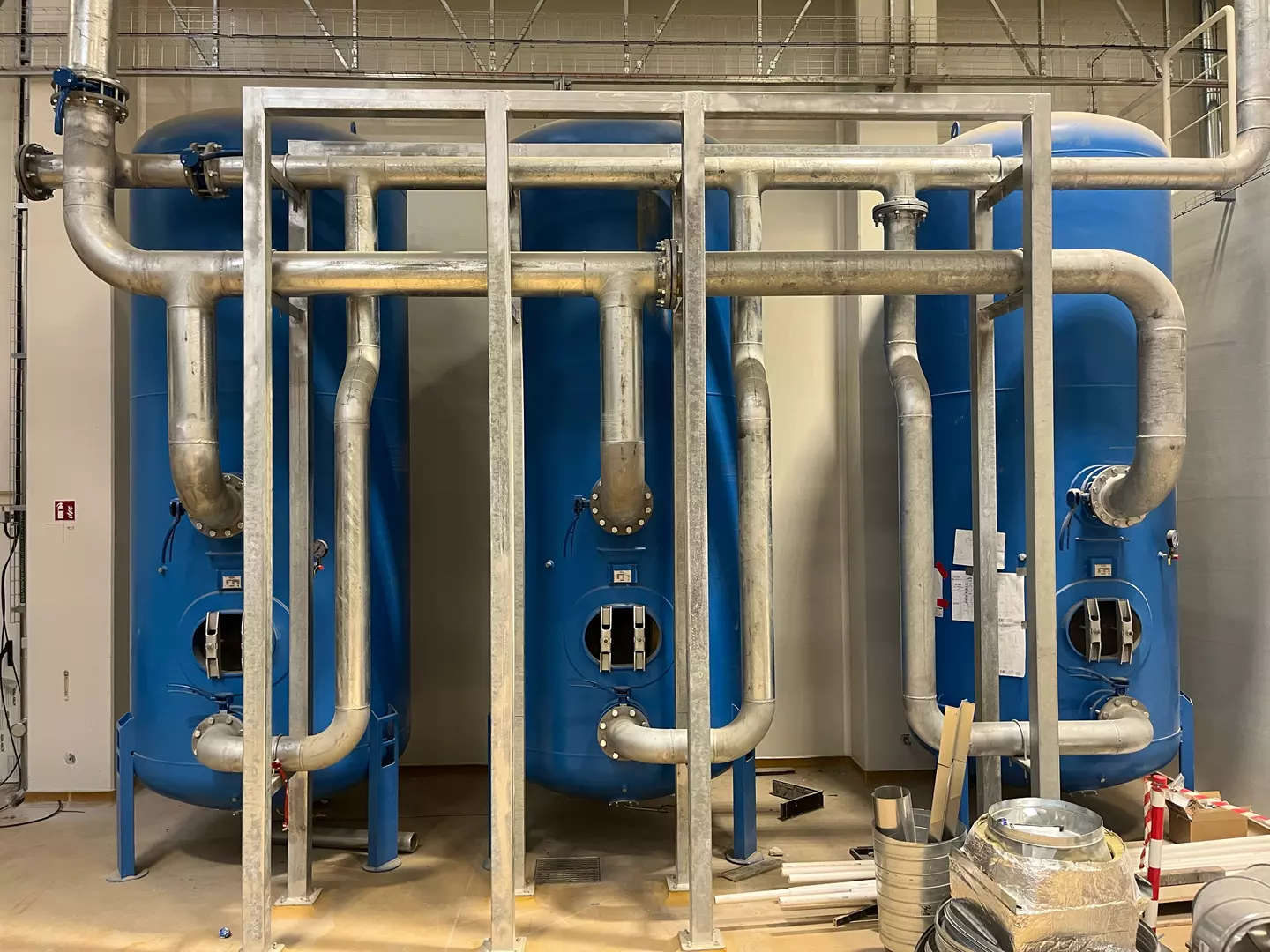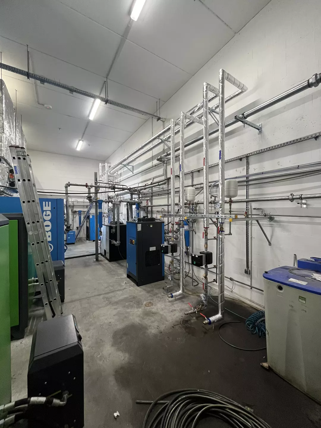 - Montaż instalacji sprężonego powietrza w halach przemysłowych, zakładach produkcyjnych oraz obiektach energetycznych.